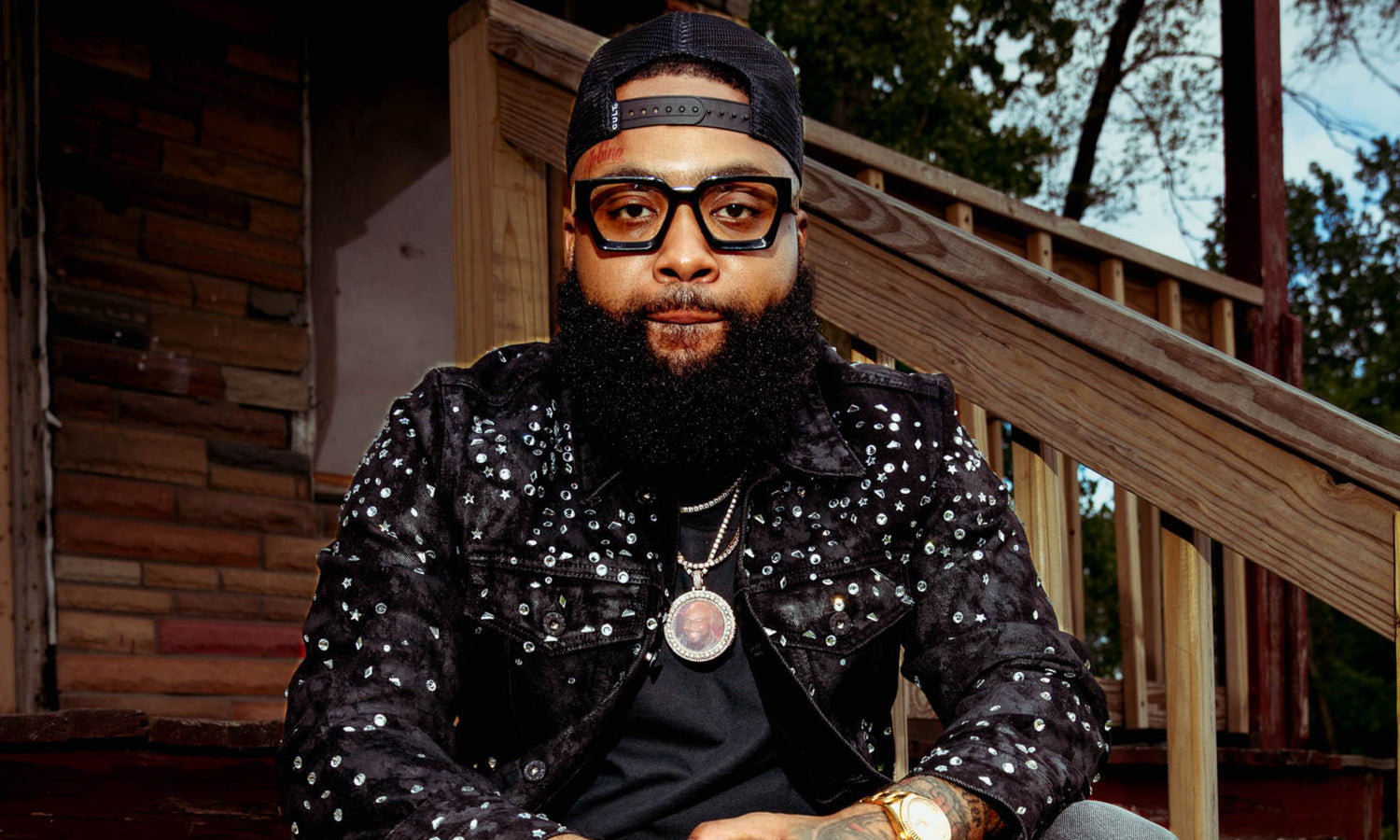 Cult x El Alfa Gold Signature 5 Panel A Frame Trucker Hat in Black