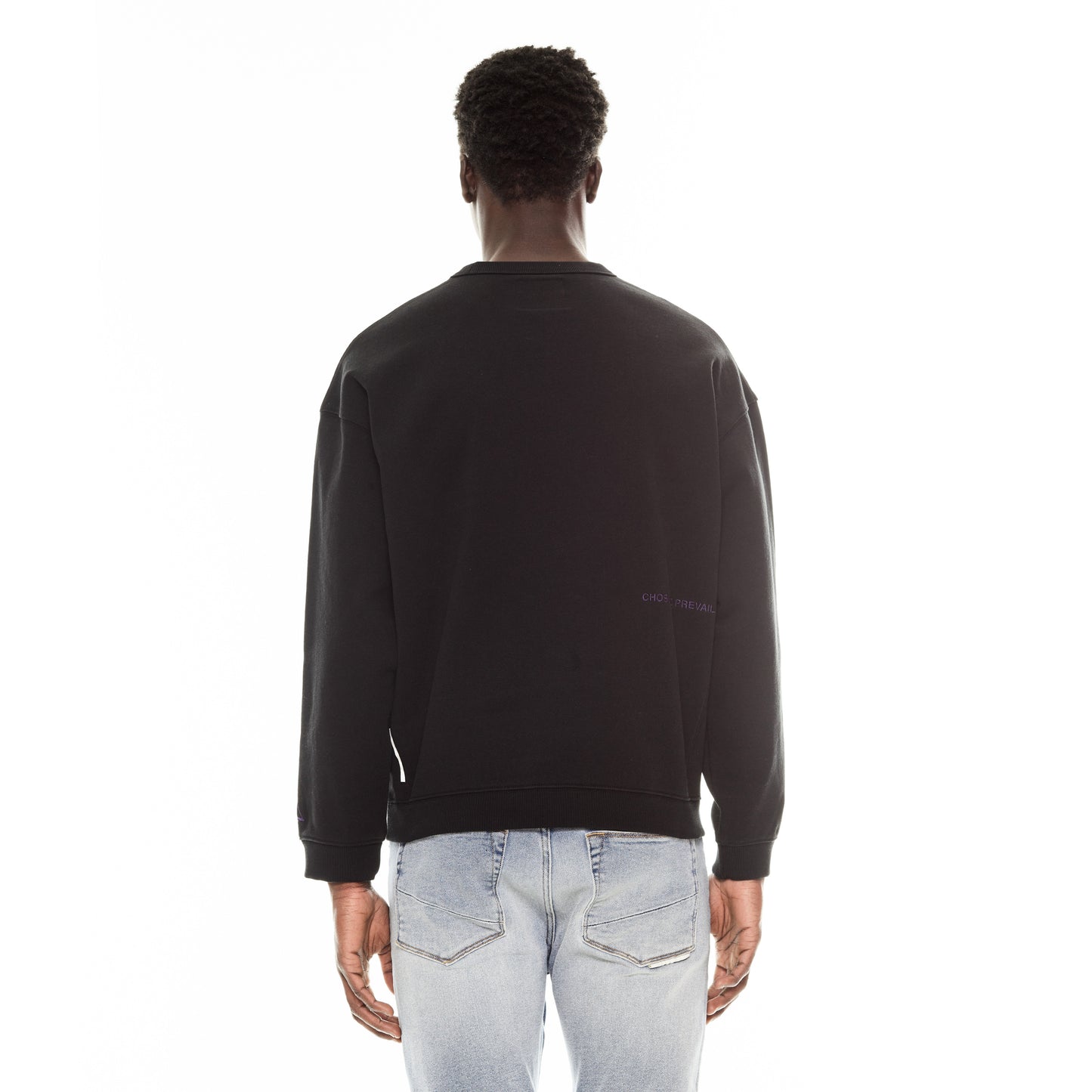 This black heavy-weight french terry crewneck sweatshirt features an oversized graphic on the front and "Chosen to Prevail" printed on the back. Each detail of this sweatshirt is meticulously crafted, promising a piece that not only looks great but also feels great to wear. Whether you're hitting the streets, lounging around with friends, or making a statement at your favorite event, this sweatshirt has got you covered.