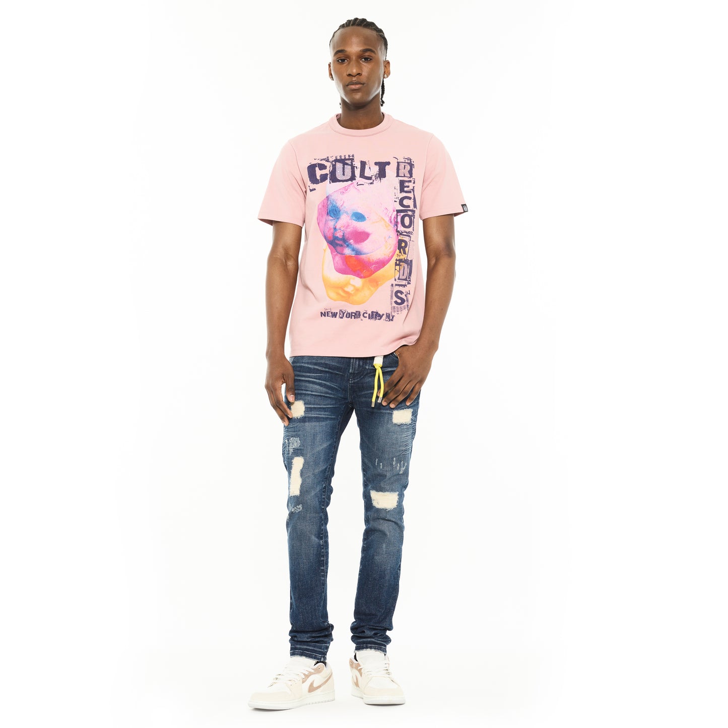 Cult's Heavyweight Short Sleeve Crew Neck Tee "Cult Records" in Silver Pink