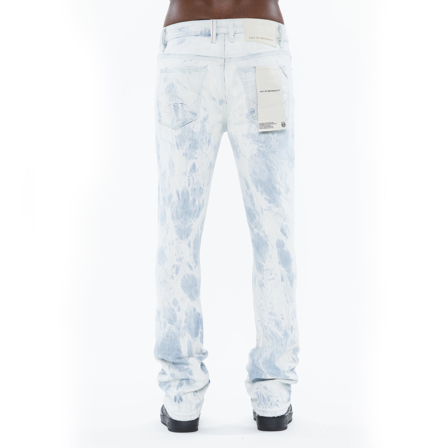 Our Lenny Bootcut style has a wider leg from knee to ankle. This jean is crafted from a premium denim with a bleach tie dye effect. Finishing touches include; our signature back pocket flasher, draw cord keychain, and Cult signature XX on back leg.