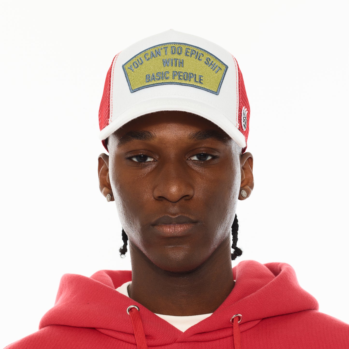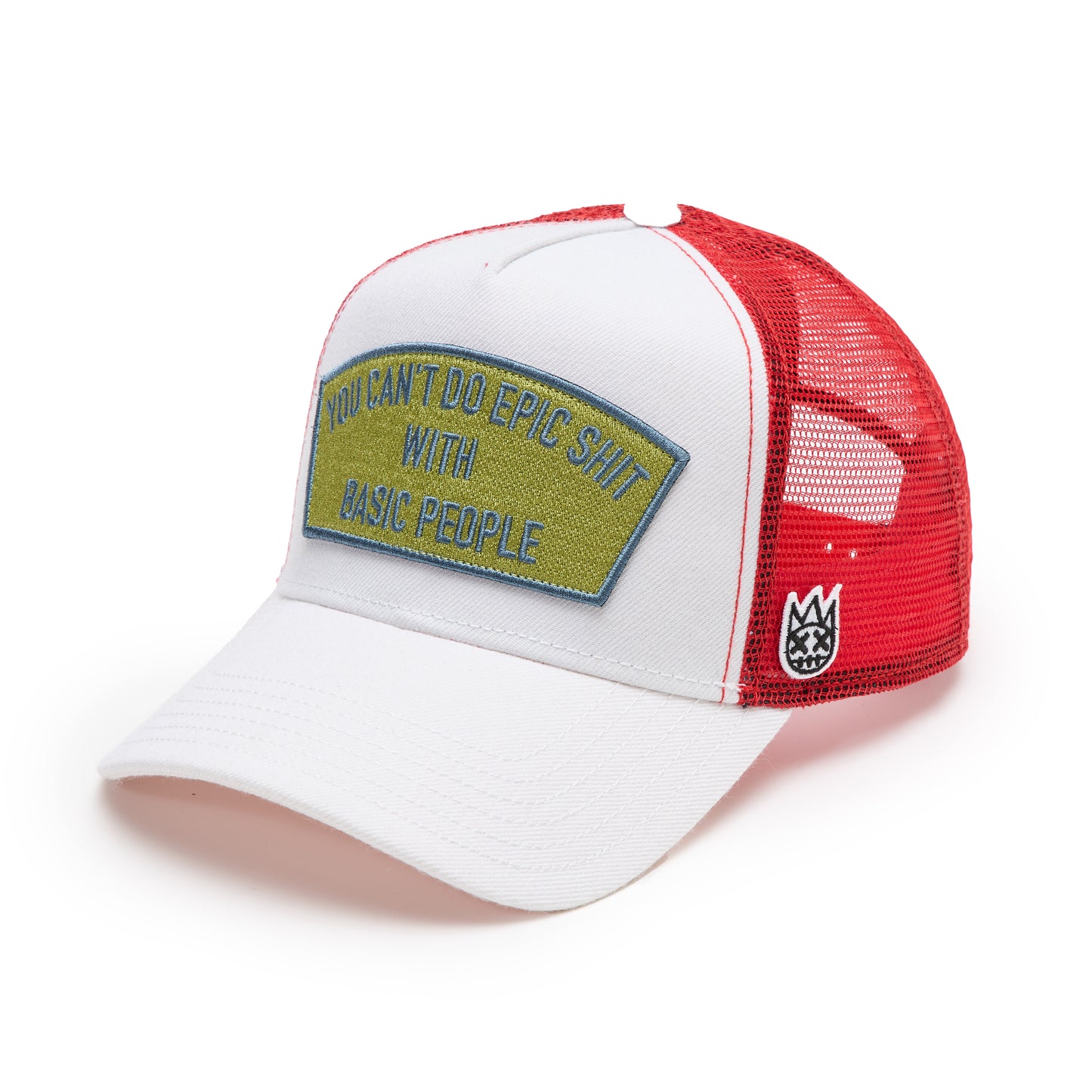 Cult's Logo Mesh Back Trucker Hat "Epic Shit" in Winter White