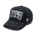 Elevate your fit with our latest mesh back trucker in black. This hat is adorned with an all over diamond embroidery pattern and an embroidery patch on the front. The adjustable strap ensures a perfect fit for every head size, while the breathable mesh back fabric keeps you cool even on the hottest days.