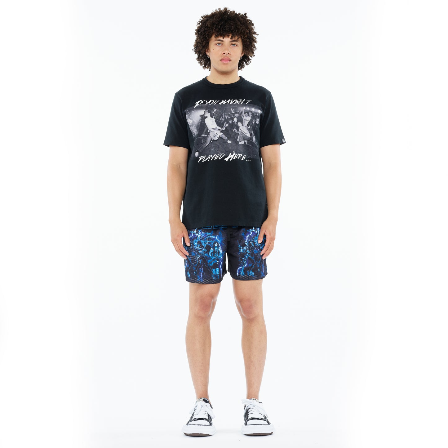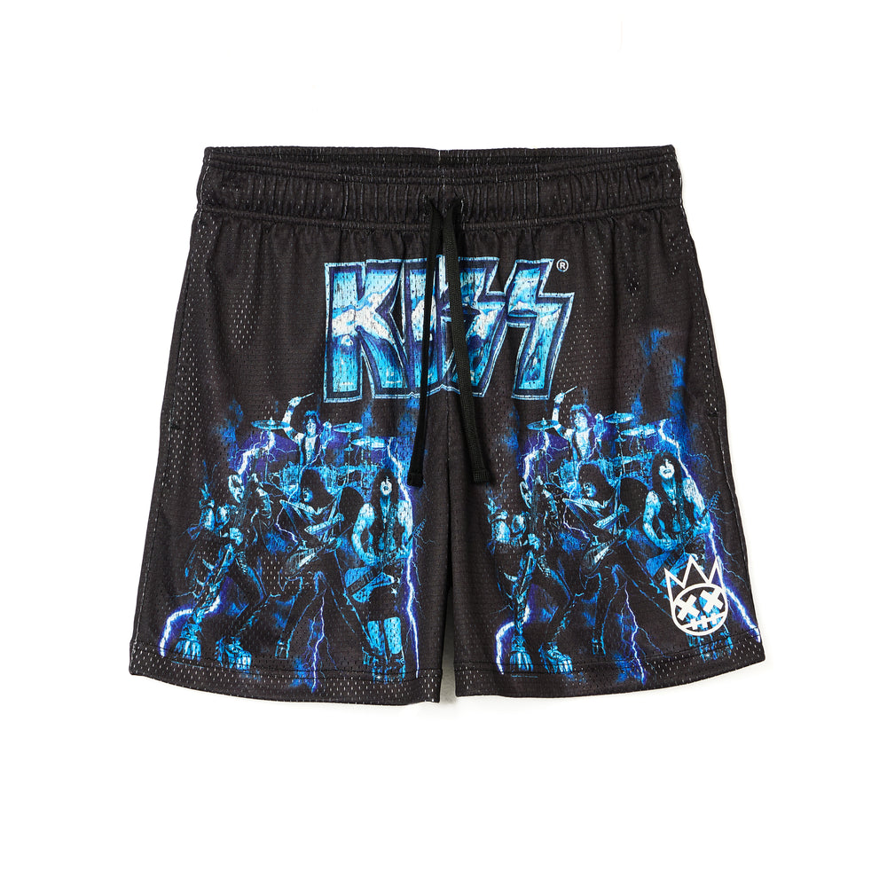 These KISS collab, black two-pocket mesh shorts feature vibrant KISS graphics printed on the fabric. Meticulously crafted from premium fabric and elevated with a detailed pattern, these shorts are not only comfortable and breathable but add a bit of style to your activewear collection.