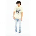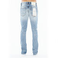 This stretch punk super skinny style has a narrow leg from thigh to ankle. Crafted from a premium stretch denim, this piece features a vintage wash, whiskers, and heavy destruction on the front of the jean. This is the perfect piece to add to your collection if you're looking to add a bit of edge to your wardrobe. Finishing touches include;  our signature back pocket flasher, draw cord keychain, and Cult signature XX on back leg.