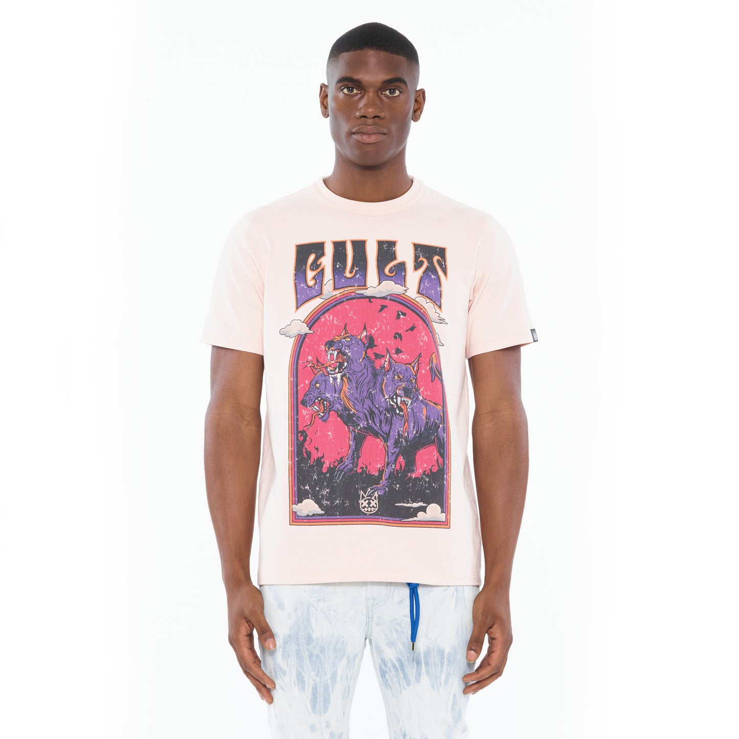 Cult's Heavyweight Short Sleeve Crew Neck Tee "Orthrus" in Powder Pink