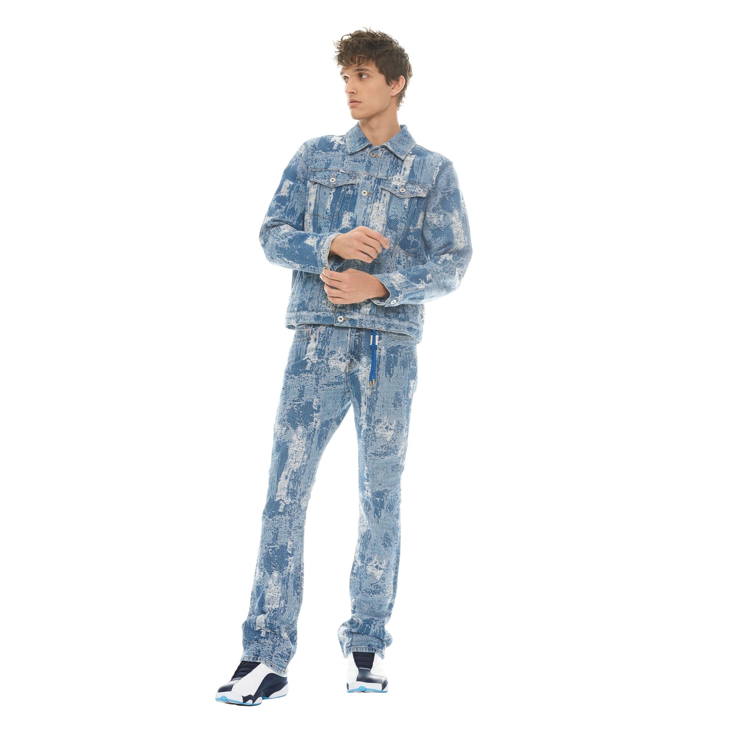 This blue digital camo lenny bootcut style has a wider leg from knee to ankle. This jean is crafted from a premium denim and finished with our signature back pocket flasher, drawcord keychain, and Cult signature XX on back leg. Paired with our matching Digi Type II denim jacket, this outfit is perfect for a night out at the club.