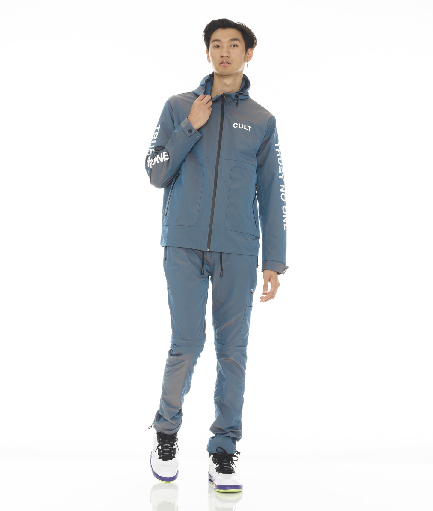 Made to keep you comfortable while also elevating a basic look to a statement piece, these Iridescent nylon pants are perfect for those looking for multifunctional sportswear. These nylon pants are crafted from a unique nylon that is both durable and wind-resistant. These pants are detailed with adjustable cords at the ankle and zippers at the knee that turn these pants to shorts.